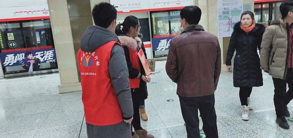 在寒冬到来之际,为了让更多的行人能够顺利到达目的地,节省宝贵的时间,同时为传承和发扬志愿服务精神,提高在校大学生服务社会的奉献意识,12月8日,js33333金沙线路检测社会实践中心联合长春志愿者协会共同组织开展了“数九寒冬,热心奉献”地铁志愿服务活动,服务地点设在长春市地铁一号线——解放大路站,一大批具有志愿服务意识的同学参加了本次活动。