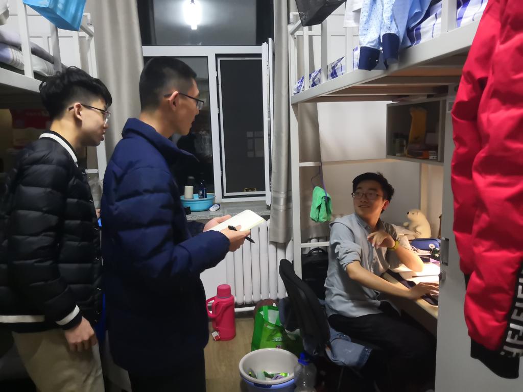 为响应学校“扫黑除恶”专项行动的号召,营造安全稳定的学习氛围与生活环境,4月8日晚,院学生会维权管理部到学生寝室开展专项排查工作,重点了解同学们最近是否遭到过不法分子的威胁,以及是否遇到过校园贷等情况。