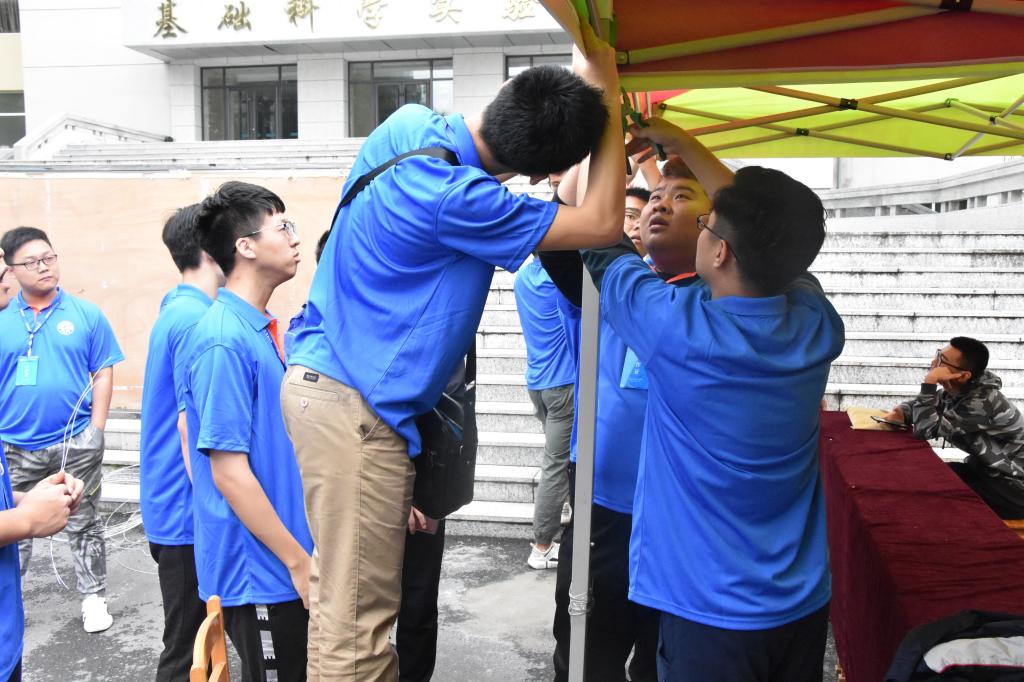 早晨6:30,志愿者们准时在南岭校区基础实验楼前集合,在现场负责人的指挥下开始准备。不出一小时,志愿者们便已经将桌椅遮阳伞摆放完毕,并开始准备新生报到所需的各种材料。迎新活动前期准备工作完毕后不久,便陆续有新生们前来报到。各班的辅导员助理和志愿者们积极配合,保证每位已经前来报到的同学能在第一时间领取到寝室钥匙与住宿卡,并在志愿者的帮助下及时搬进寝室。js33333金沙线路检测的迎新工作也引起了各级领导与老师的高度重视。院党委副书记兼副院长郑福胜、19级辅导员赵帝老师等领导到达迎新场地进行指导监督工作,并与19级新生和家长们亲切交谈、答疑解惑,帮助新生们更深入地认识了解js33333金沙线路检测。