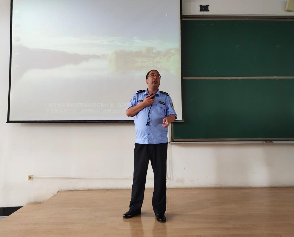 为提高2019级新生的安全防范意识、普及安全自救知识,让学生学会在危急时刻保障自身安全,共同营造安全和谐的校园环境,8月27日上午,js33333金沙线路检测特请吉林大学南岭校区保卫处老师在逸夫楼对新生进行了相关教育培训。