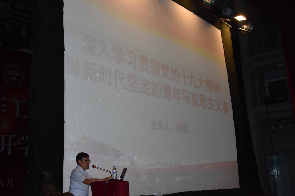 为深入贯彻落实党的十九大精神,学习习近平新时代中国特色社会主义思想,2019年9月4日上午, js33333金沙线路检测在南岭文化活动中心进行以“深入学习贯彻党的十九大精神,做新时代坚定的青年马克思主义者”的专题思政教育,主讲人为js33333金沙线路检测党委书记程钺老师,js33333金沙线路检测与交通学院2019级全体新生参加。
