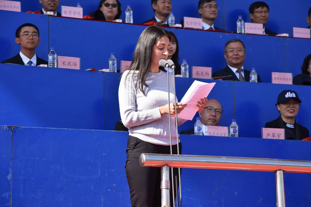 随后本科生新生代表、研究生新生代表及留学生代表分别上台发言,他们无一不是表达对加入吉林大学这个大家庭的喜悦与自豪,也都想着在大学中能够实现自己的理想与目标。留学生同学更是希望能够学有所成,为本国人民与中国人民的长久友谊做出一份贡献。吉林大学电子科学与工程学院院长卢革宇作为教师代表发言,他向全体同学表达了老师们对同学们的热烈欢迎,也表达了老师们对同学们的殷切期盼。最后,由吉林大学校长张希上台发言,他鼓励同学们要努力学习,在大学中闯出一番属于自己的天地,祝愿同学们能在大学生活中找到自己的归属。
