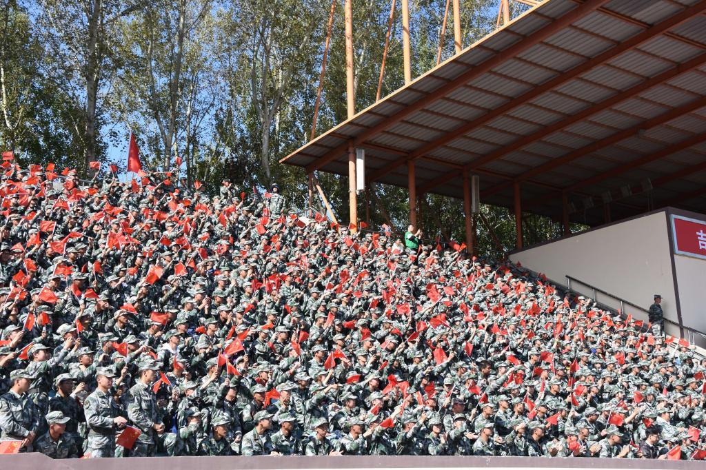 大会伊始,全体师生起立,奏唱国歌,校歌,向祖国和母校表示崇高的敬意。各营方队同学们随之入场,他们个个训练有素,气宇轩昂,步伐整齐,展现出极高的军训水平及吉大学子的优秀素质嘹亮的口号声中,同学们表现出了满腔热忱的报国雄心。正值祖国70周年诞辰之时,格斗术表演队不仅展现了高超的格斗技巧,更是向祖国70诞辰献礼,让人眼前一亮。