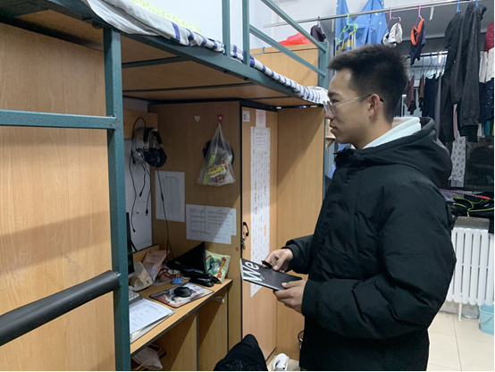 查寝工作正式开始之前,所有查寝人员在大厅集合,副部长们向查寝人员说明此次查寝的重要性以及注意事项。在随后的查寝工作中,查寝人员细致地询问同学们的住宿情况,检查暖气的供暖情况,并且对有损坏报修情况的宿舍进行详细的记录。此外,查寝人员还提醒同学们严禁使用违章电器,耐心地向同学们讲解使用违章电器可能造成的后果。副部长们对查寝人员出现的问题给予提醒纠正,以保证本次查寝活动能够顺利进行。查寝工作结束后,所有查寝人员在大厅集合,成员们汇总并且交流此次查寝所遇到的问题,讨论解决方案。至此,本次查寝工作圆满结束。