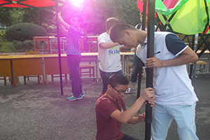 8月19日清晨,在主席团成员的带领下,机械学院全体志愿者在二教楼前集合,搬运大量的桌椅板凳到迎新会场,完成会场的前期准备工作。随后,后勤管理组的成员前往机械馆512将气球、彩旗等场地装饰物品搬到迎新会场并装饰在帐篷四周。五彩缤纷的气球与彩旗在晨风中随风舞动,构成迎新会场中最亮丽的一道风景线,期待着机械新学子的到来。早7点,宣传报道组及前台工作人员在记者团团长带领下,前往南岭校区的校门、逸夫楼前、机械馆前以及学生公寓前悬挂迎新条幅。经过近两个小时的努力工作,八条崭新的迎新条幅全部悬挂在校园各处。青春的语句、工整的对仗,让来自祖国各地的新同学感受到学院的关怀与温暖。